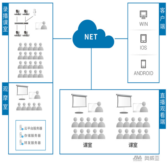 ????????利用AVA高清錄播系統(tǒng)全自動和手動錄制的方法,準確、清晰的把老師課堂實況錄制下來,同時可通過網(wǎng)絡(luò)實時直播和視頻點播功能,讓學生在課中和課后進行觀摩學習,從而全面提升教學質(zhì)量,建設(shè)校本教學資源庫。