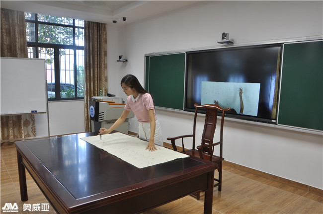 書法繪畫訓(xùn)練室:老師的書寫以特寫畫面在大屏上呈現(xiàn)