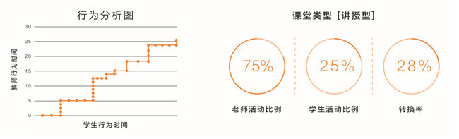 除了能節(jié)省評課的時間以外,奧威亞更是為評課專家提供實實在在的評課協(xié)助。在課程錄制的過程中,系統(tǒng)將自動分析視頻數(shù)據(jù),并對應(yīng)生成ST行為分析圖和教學(xué)行為活動餅圖,為評課專家提供更直觀的客觀數(shù)據(jù)。