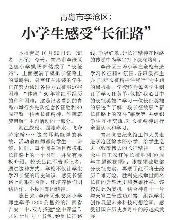 “長征精神”需要傳承和延續(xù),新時(shí)代的學(xué)生需要?jiǎng)?chuàng)新與成長。得益于教育信息的發(fā)展,兩地的學(xué)生得以“零距離”互動交流,更通過新型的教育方式將“長征精神”深植心中。弘揚(yáng)長征精神,走好今天的長征路。