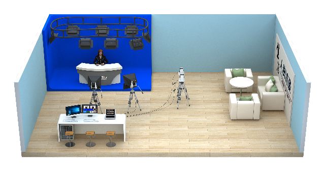考慮到用戶的不同需求,我們?cè)O(shè)計(jì)了2種實(shí)現(xiàn)方式。當(dāng)學(xué)校需要完成人物訪談、新聞發(fā)布、校長(zhǎng)談話等實(shí)景拍攝的場(chǎng)景時(shí),可以采用實(shí)景拍攝的方式。當(dāng)想要完成譬如新聞播報(bào)、軍訓(xùn)、校運(yùn)會(huì)、校慶、電視比賽、名師大講堂等不同的場(chǎng)景時(shí),學(xué)校可以采用虛擬摳像的方式實(shí)現(xiàn)。